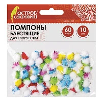 Помпоны для творчества, многоцветные, блестящие, 10 мм, 60 шт., ОСТРОВ СОКРОВИЩ, 661433
