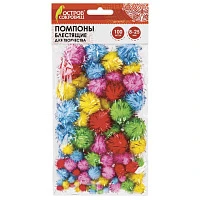 Помпоны для творчества, блестящее ассорти, 5 цветов, 8 мм/15 мм/25 мм, 100 шт., ОСТРОВ СОКРОВИЩ, 661437