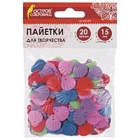 Пайетки для творчества "Ракушки", яркие, цвет ассорти, 5 цветов, 15 мм, 20 грамм, ОСТРОВ СОКРОВИЩ, 661284