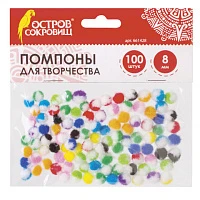Помпоны для творчества, многоцветные, 8 мм, 100 шт., ОСТРОВ СОКРОВИЩ, 661428