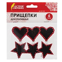 Прищепки декоративные "Сердце с узором", 6 штук, 3,5 см, ассорти, ОСТРОВ СОКРОВИЩ, 661292