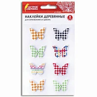 Наклейки деревянные БАБОЧКИ, 8 штук, ассорти, ОСТРОВ СОКРОВИЩ, 662285
