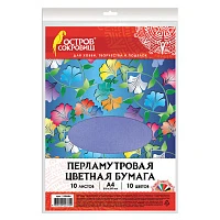 Цветная бумага А4 ПЕРЛАМУТРОВАЯ, 10 листов 10 цветов, 80 г/м2, ОСТРОВ СОКРОВИЩ, 129884