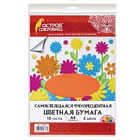 Цветная бумага А4 БАРХАТНАЯ САМОКЛЕЯЩАЯСЯ, 5 листов 5 цветов, 110 г/м2, ОСТРОВ СОКРОВИЩ, 129874