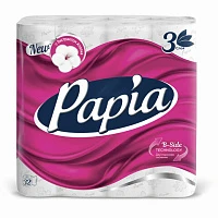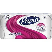 Бумага туалетная Papia 3-слойная белая (8 -рулонов в -упаковке)