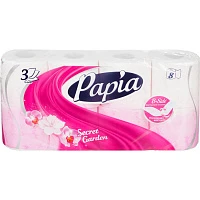 Бумага туалетная Papia "Secret Garden", 3х-слойн., 8шт., ароматизир., розовое тиснение, белый
