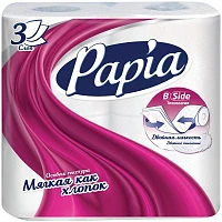 Туалетная бумага Papia Белая, 3-х слойная, 4 шт.