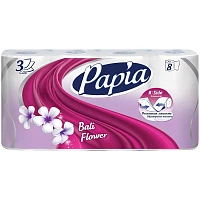 Бумага туалетная Papia "Балийский Цветок", 3-х слойн., 8шт., тиснение, белая, 5036605
