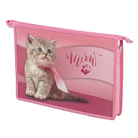 Папка для тетрадей А4, ламинированный картон, цветная печать, тиснение, молния сверху, "МимиМяу", ПМ-А4-229