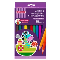 Карандаши цветные ПИФАГОР "СКАЗОЧНЫЙ ГОРОД", 12 цветов, черный пластик, заточенные, 181583