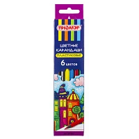 Карандаши цветные ПИФАГОР "СКАЗОЧНЫЙ ГОРОД", 6 цветов, черный пластик, заточенные, 181582