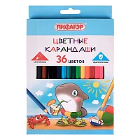 Карандаши цветные ПИФАГОР "Веселые акулята", 36 цветов, классические, заточенные, 181819