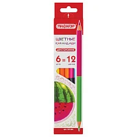 Карандаши двусторонние ПИФАГОР "СОЧНЫЕ ФРУКТЫ", 6 штук, 12 цветов, заточенные, европодвес, 181360