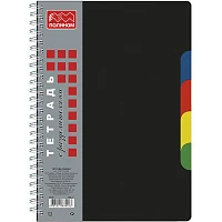 Бизнес-тетрадь А5,120л,кл,гребень,пластик.обл. с вырубк,4раздел ЧЕРНЫЙ 15с7