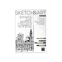 Набор бумаги для скетчинга SKETCH&ART А4 для акр, гуаши, темп 160г/м2, 20л, 4-20-150/02
