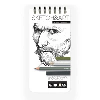 Скетчбук S&A 105х220 60л БЕЛ.ГЛАД 160г н/гребн,д/акр,гуаши,темп 1-60-559/03
