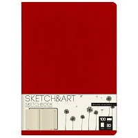 Скетчбук S&A ORIGINAL 140х210 100л БЕЖ 100г книж.перепл.мягк.красн 1-500/02