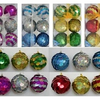 Новогодний шар блестящ.крошка полифом с лентой и ягодами 7см 6шт.в кор 6цв.