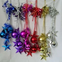 Новогодние шары/звезды-гроздь с бантом/мишурой блест./мат. 5шт 7см 2 цвета в пак.