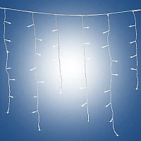 Новогодняя электрогирлянда сосулька 150л.LED белый цв.,бел.кабель 3.48 х 0.49м + 0.75м до розетки Е96353
