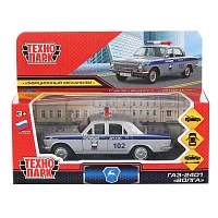 Машина металл ГАЗ-2401 ВОЛГА ПОЛИЦИЯ 12 см, двери, багаж, серебристый, Технопарк