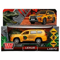 Машина металл LEXUS LX570 ДИНОЗАВРЫ 12 см, двери, багажник, инерция, желтый, коробка. Технопарк