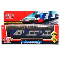 Модель металл ПАССАЖИРСКИЙ ЭЛЕКТРОПОЕЗД 17 см, двери, инерция, синий, в коробке. Технопарк
