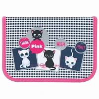 Пенал TIGER FAMILY 1 отделение, 1 откидная планка, ткань, "Think Pink", Европейский, 20х14х4 см, 228968, TGNQ-053C1E