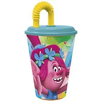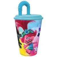 Стакан пластиковый с соломинкой и крышкой (спортивный, 430 мл). Тролли 2