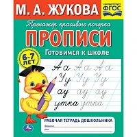 Прописи. М.А. Жукова 6-7 лет. Тренажер красивого почерка. Рабочая тетрадь 16 стр. Умка