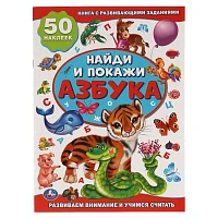 Азбука. Активити +50 Найди и покажи. 210х285 мм. 8 стр. + стикер. Умка