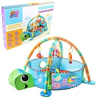 Развивающий коврик детский "Черепашка", бортик, мячи, 70*70*56 см.