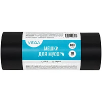 Мешки для мусора 180л Vega ПВД, 80*106см, 25мкм, 20шт., черные, в рулоне