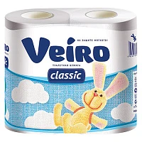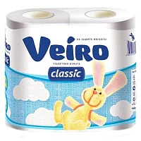 Туалетная бумага Veiro 2-х слойная, Classic, голубая, 4 шт.