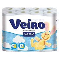 Бумага туалетная бытовая, спайка 24 шт., 2-х слойная (24х17,5 м), VEIRO Classic, белая, 5с224