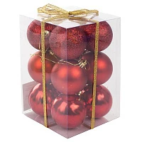 Набор из 12-ти пластиковых шаров, 6см, цвет-красный/ПВХ коробка KL37796
