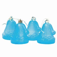 Украшения елочные подвесные "Колокольчики", НАБОР 4 шт., 6,5 см, пластик, полупрозрачные, голубые, 59598