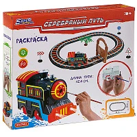 Железная дорога "Серебряный путь" с одним паровозом под раскраску (акрил. краски, кисточка, стакан)