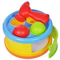 Игрушка-сортер разв. "Бей в барабан": барабан и сортер, 4 шарика и молоточек. 633053