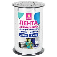 Лента упаковочная декоративная для шаров и подарков, 5 мм х 500 м, белая, ЗОЛОТАЯ СКАЗКА, 591808