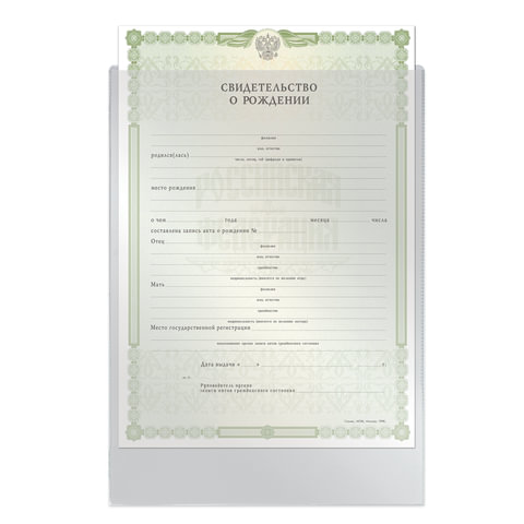 Папка-файл для свидетельства о рождении, 190х263 мм, без отверстий, ПВХ 120 мкм, "ДПС", 1746