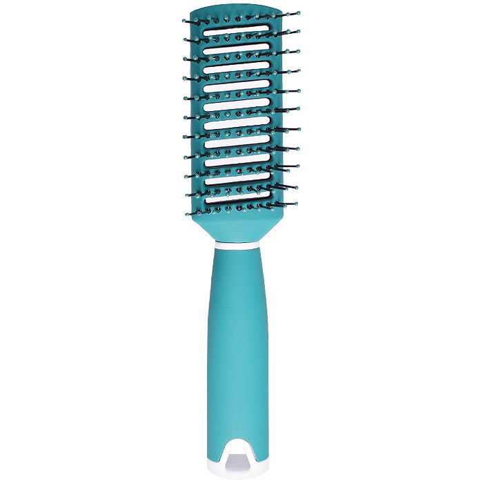 Расческа массажная прямоугольная пластиковая бирюзовая,с удобной прорезиненной ручкой