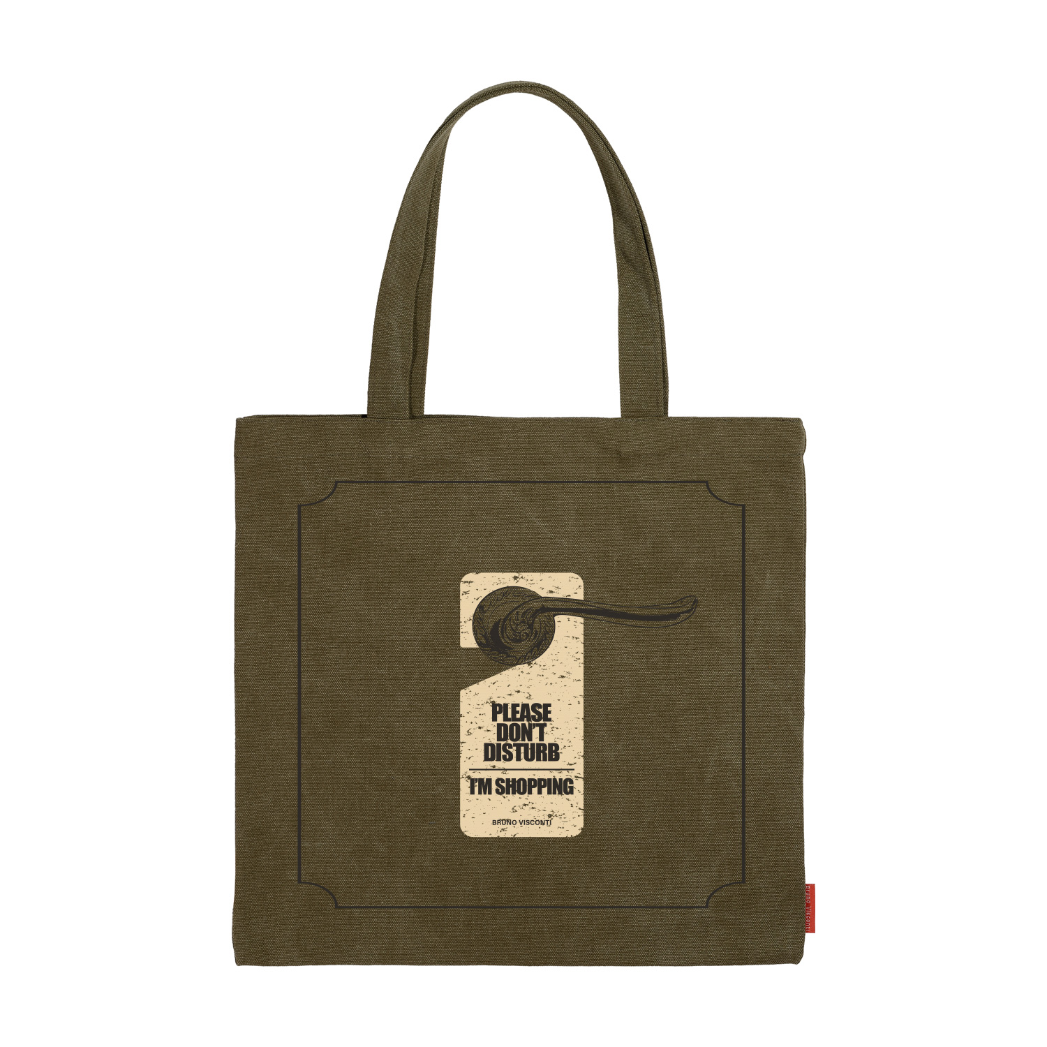 СУМКА-ШОППЕР КВАДРАТНАЯ, ЦВЕТ ХАКИ "НЕ БЕСПОКОИТЬ!" 39x39 cm