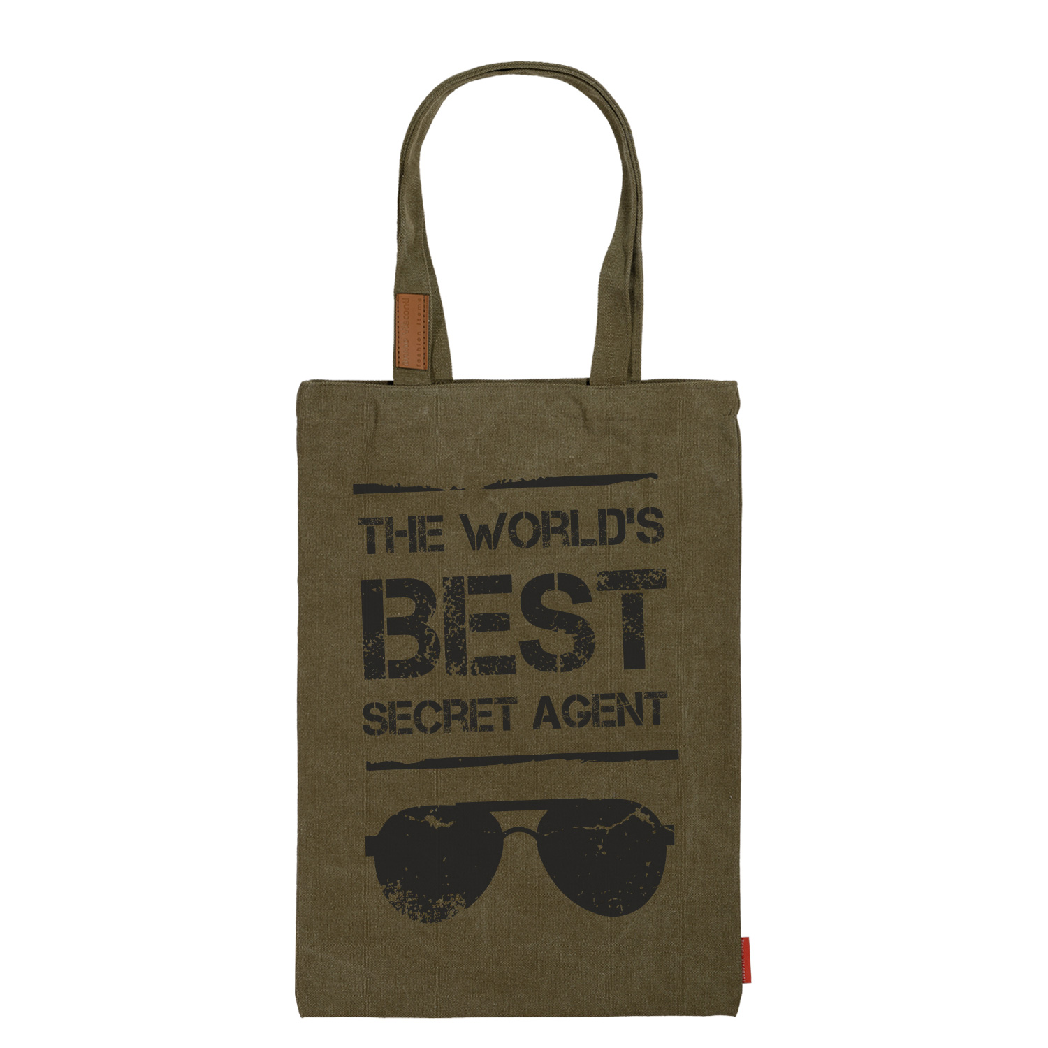 СУМКА-ШОППЕР С КАРМАНОМ, ЦВЕТ ХАКИ "SECRET AGENT" 35x47 cm