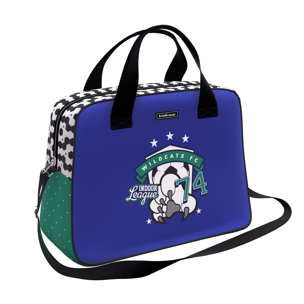 Универсальная модель отлично подойдет для спорта и путешествий. Сумка, 38x29x20 см, изготовлена из износо- и морозостойкого водоотталкивающего 100%-го полиэстера. Внутри карман на молнии. Сумка отлично держит форму благодаря жесткому канту и внутренней съемной пластиковой вставке на дне. Места крепления регулируемого плечевого ремня и ручек усилены дополнительными швами. Надежная молния с мягким ходом оснащена двумя бегунками с логотипом ErichKrause®. Модель, реализованная в детских коллекциях, оснащена светоотражающими элементами по всему периметру.