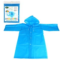 Плащ-дождевик для ребенка 8-10 лет на кнопках многоразовый, с карманами, прочный, ПВХ, синий, 26939