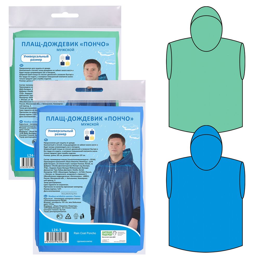 Плащ-дождевик "Пончо" 137*101см. универсальный размер, 2 цвета
