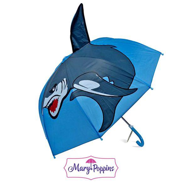 Детский зонтик-тросточка защитит ребенка от непогоды, он украшен изображением акулы с объемным плавником. Зонтик не боится дождя и ветра благодаря прочному креплению купола к каркасу.Технические характеристики:Механическая система складывания;Концы спиц закрыты пластиковыми шариками;Пластиковый фиксатор на стержне зонтика;Радиус купола - 46 см.