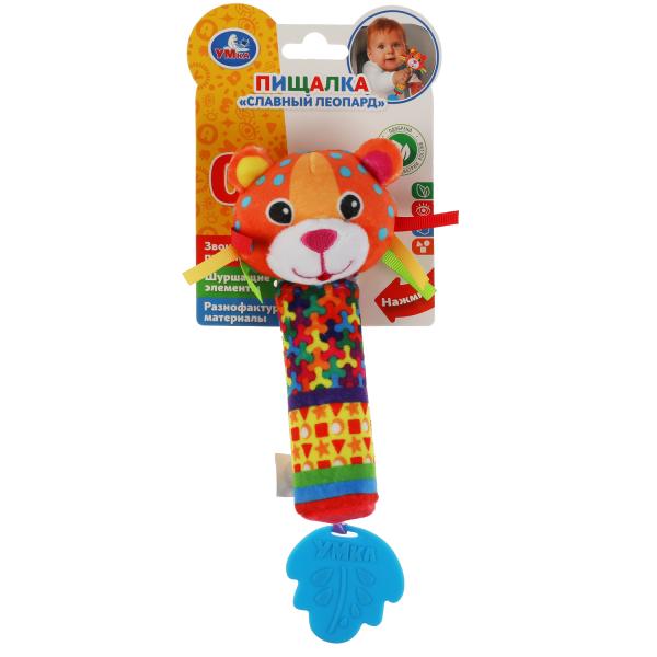Текстильная игрушка погремушка пищалка леопард с прорез. Умка