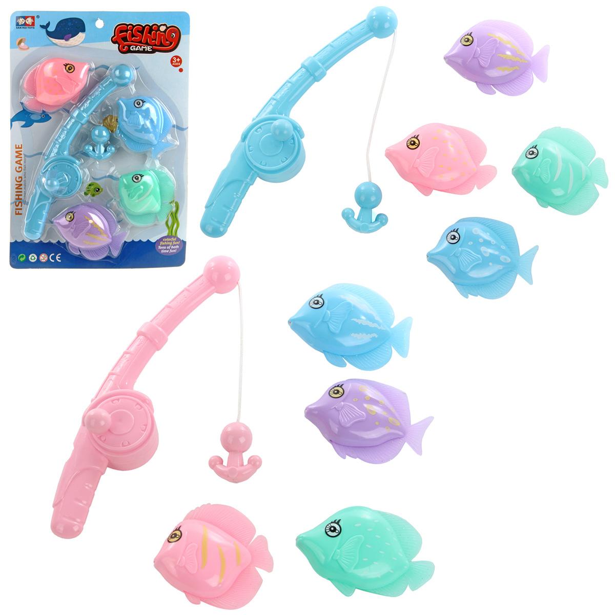 Время веселой и увлекательной рыбалки. Кто больше всех поймает рыбок, тот и победил. В комплект входят удочка и 4 рыбки. На носиках рыбок есть магнитные элементы, у удочки намагничен крючок, благодаря этому рыбки легко ловятся. Катушка у удочки крутится, леска-веревка отматывается. _x000D_ Игрушка отлично развивает зрительное восприятие, мелкую моторику ручек, координацию движений и воображение. Этот яркий и красивый набор превратит обычное купание малыша в интересную игру._x000D_ Игрушка представлена в ассортименте._x000D_ _x000D_ Игрушка изготовлена из высококачественного и безопасного полимерного материала, упакована в блистер с отверстием._x000D_ Размеры рыбки: 8*3*7 см._x000D_ Размеры удочки: 24*5*7 см._x000D_ Размеры игрушки в упаковке: 21,5*3*31 см._x000D_